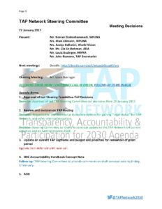 TAP Network Steering Committee ConfCall 27 January 2017